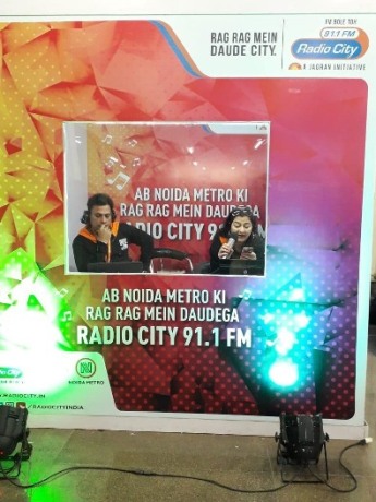Radio City 91.1FM in Delhi installed a radio studio at NMRC Sector 51, Noida on 20th February 2019. Radio City’s most loved jocks, RJ Ginnie, Divya, Yuvi, Aadi–Manav broadcasted their respective shows LIVE from the metro station from 7:00am to 9:00pm, and gave Noida citizens a treat of foot tapping music and entertainment.