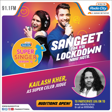 30th November, 2020Radio City announces the 12th season of India’s biggest singing talent hunt on the radio - Radio City Super Singer, to uphold its legacy of turning the spotlight onto some of India’s brightest singing stars. Singing superstar, Kailash Kher, would be judging the contestants of this season and will crown the ultimate winner of the Hindi speaking region across Radio City’s presence.